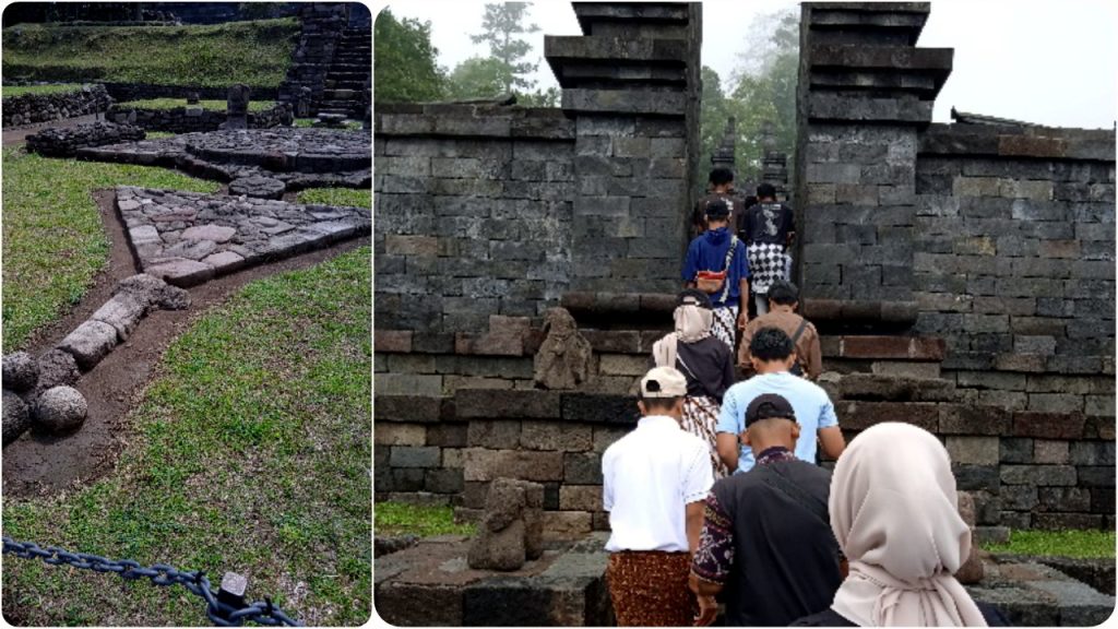 Menaiki anak tangga curam menuju puncak, rombongan disambut angin sepoi dan pemandangan hamparan sawah hijau yang memesona, simbol kesuburan tanah Jawa.