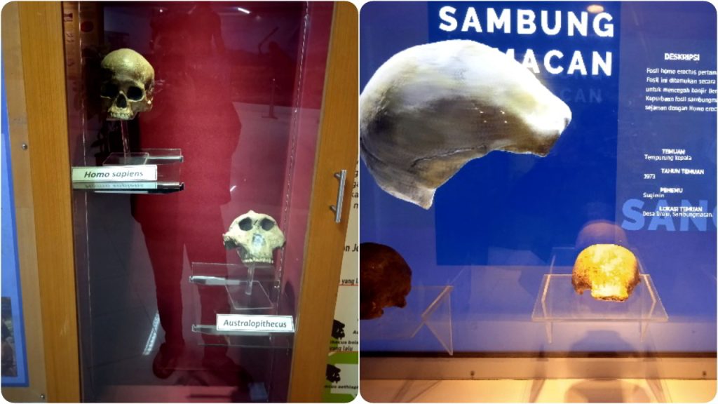 Di dalam, fosil Homo sapiens dan Homo erectus menjadi bintang utama, replika tengkoraknya seolah berbisik cerita perjuangan bertahan hidup 1,5 juta tahun lalu, lengkap dengan foto arca Meganthropus paleojavanicus yang gagah.